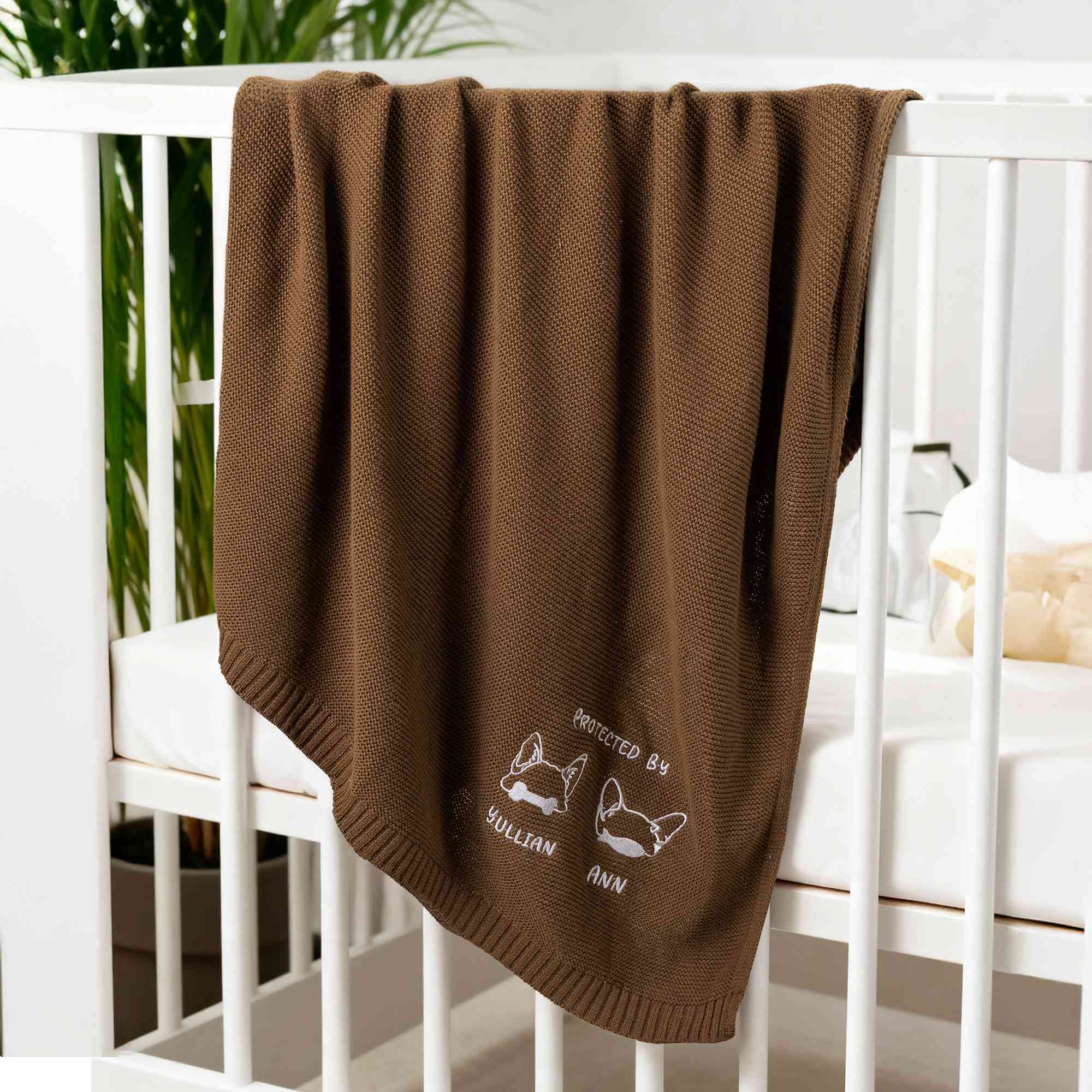 Personalized Name Embroidered 1-2 Pet Ear Outlines Knit Baby Blanket