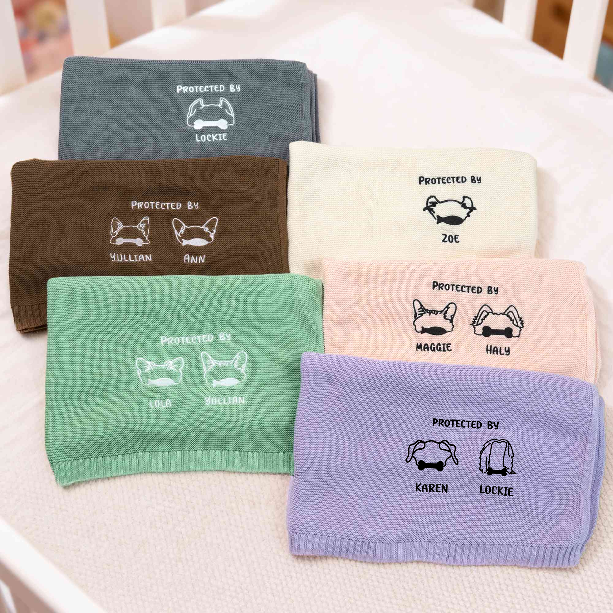 Personalized Name Embroidered 1-2 Pet Ear Outlines Knit Baby Blanket, Stroller/Car Seat/Nursery Essential, Baby Shower/Birthday Gift for Newborns